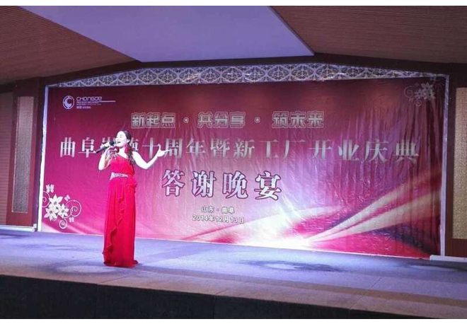 当晚的答谢宴会在轻松、欢快的歌舞、乐曲声中拉开帷幕。来自世界各地、全国各地的公司客户欢聚一堂,董事长刘成干先生满怀豪情的致辞回顾了公司的十年风雨兼程。十年的努力,承载着岁月的悠久;十年的沧桑,铭记着永恒的风流;十年的执着,镌刻着不懈的追求;十年的奋斗,铸造了骄人的业绩!伴随着晚宴和歌舞,同时穿插进行抽奖活动,把整个晚会推向了高潮。在浓浓的祝福中,曲阜市崇德精密机械有限公司十周年庆典欢迎晚宴圆满落幕!